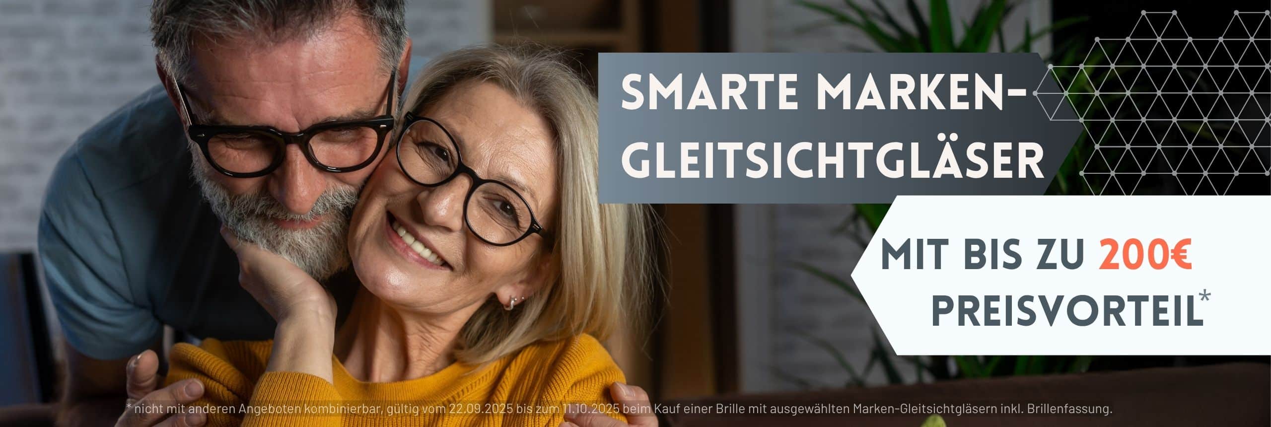 Gleitsichtbrillen ermöglichen stufenloses und kontrastreiches Sehen in allen Entfernungen. Optimal angepasste und präzise vermessene Gleitsichtgläser bieten entspanntes, klares Sehen in jeder Situation, entlasten die Augen und beugen Ermüdung vor. Damit sind sie der ideale Allrounder für Ihren Alltag.